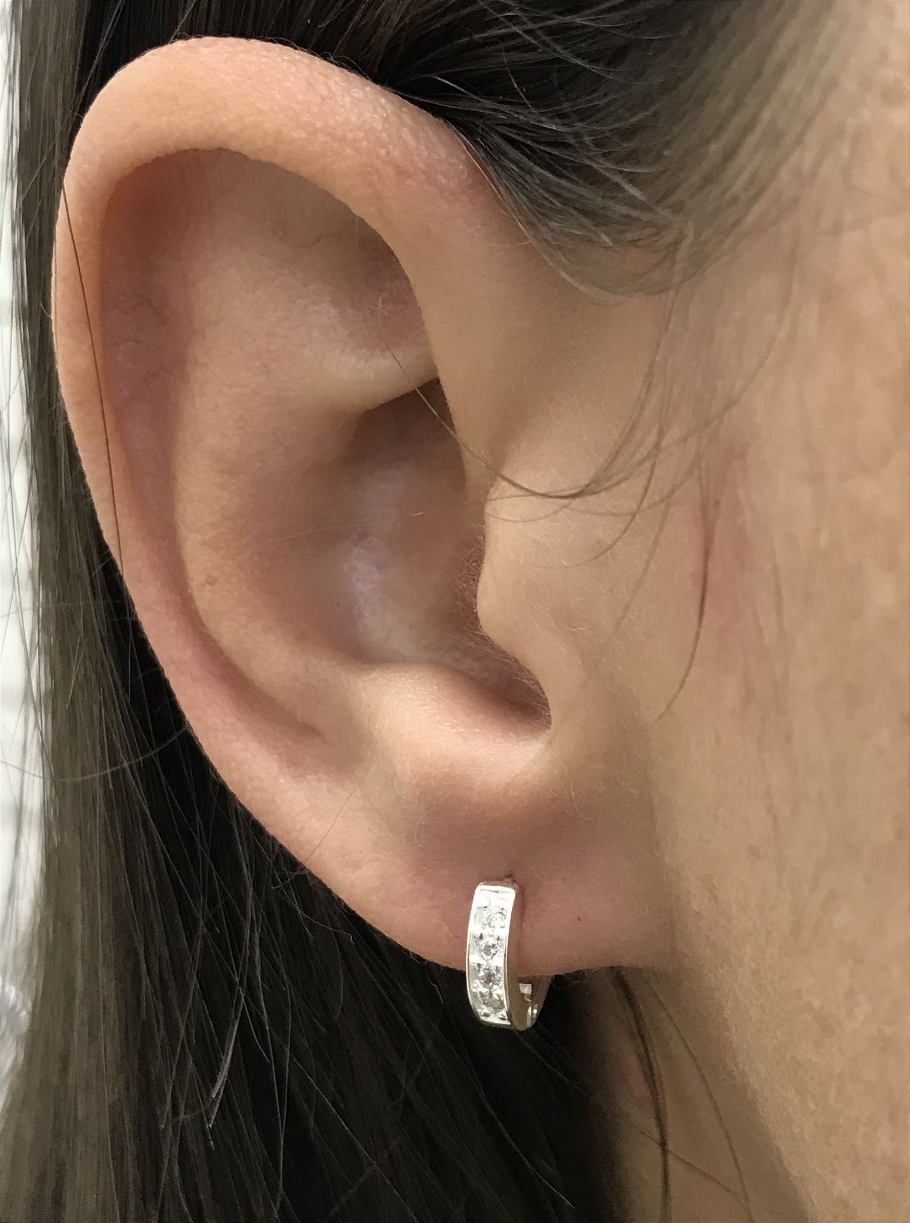 Par de Brincos Argola de Prata Pura Cravejada com Pedra Natural Zircônia